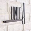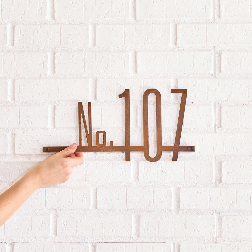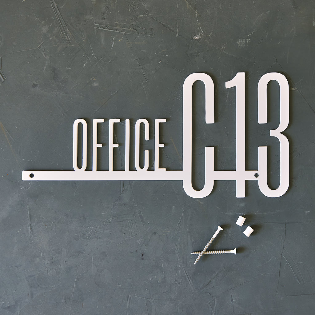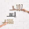 • The sign is designed with larger numbers on the right and your unique unit text on the left. Examples include Unit, No., #, Office, Casa, Room, etc..