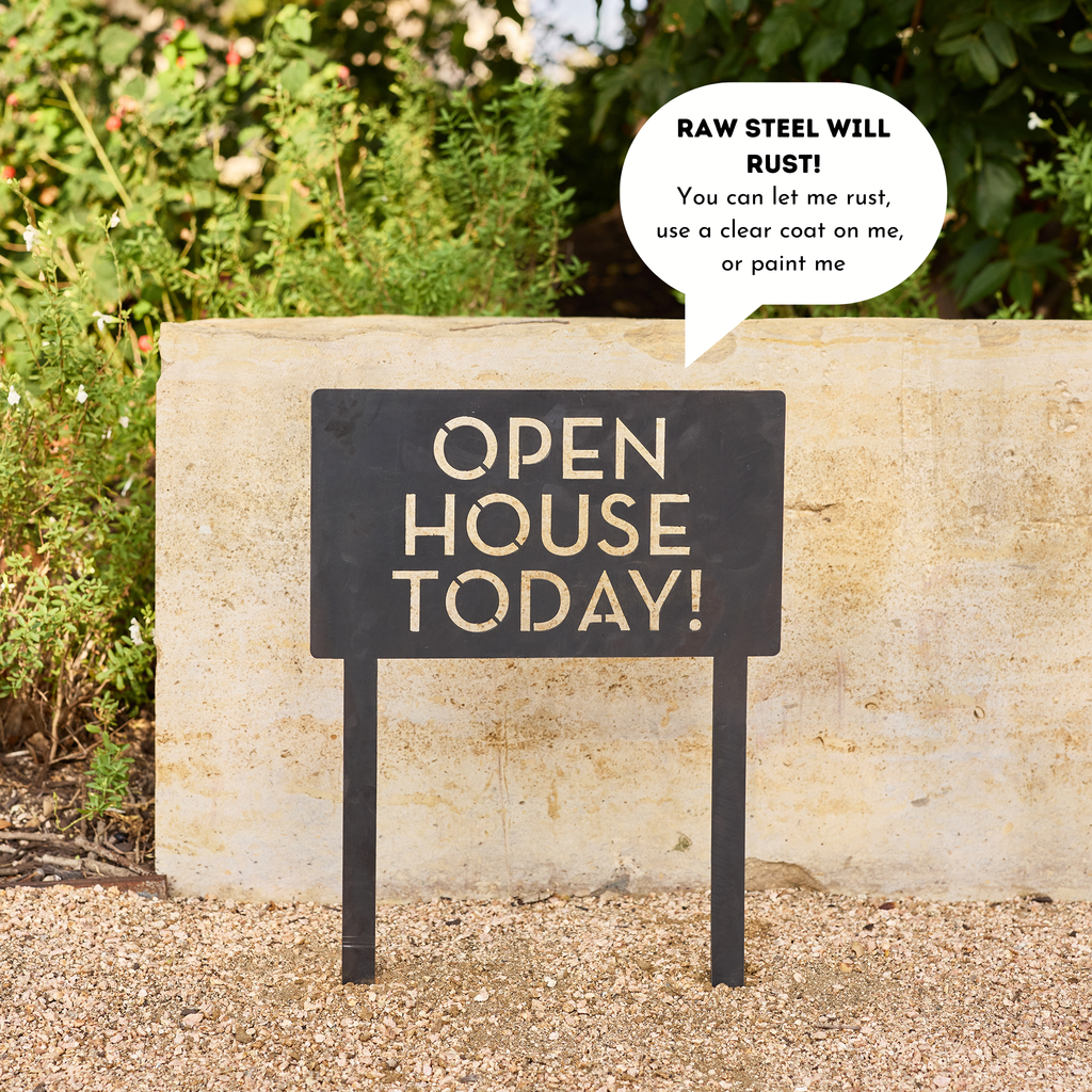 • Customizable sign cut from a single piece of 14-gauge steel