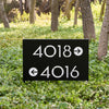 The address numbers are cut from the steel sign and backed with a white or black acrylic plate for better readability. We also provide a clean steel back to match the front finish so the acrylic back plate is not visible. The address numbers and street name are right justified and backed with a white or black acrylic color back plate for better readability. We also provide a clean steel back to match the front finish so the acrylic back plate is not visible.