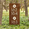 Available sign finishes: our unique hand-finished rust patina or powder coated black or dark brown.